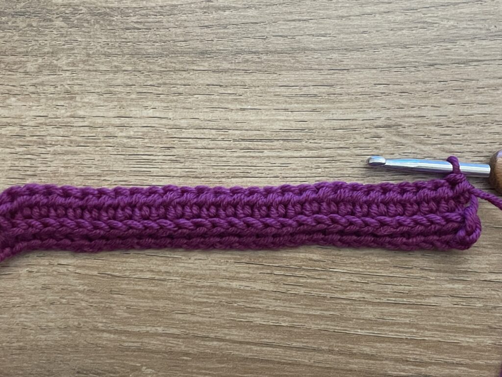 Het leuke van deze steek is, dat het een 3D effect heeft. De V’tjes waar je normaal in haakt, liggen nu op je werk. Ook is er geen verschil zichtbaar tussen de goede en de slechte kant.